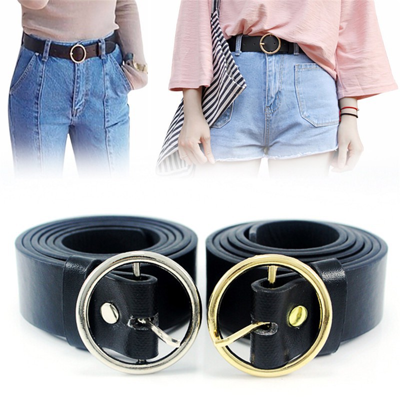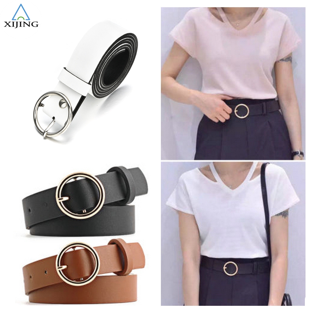 Ikat Pinggang Bahan Kulit Pu Bulat Dengan Gesper Metal Untuk Wanita