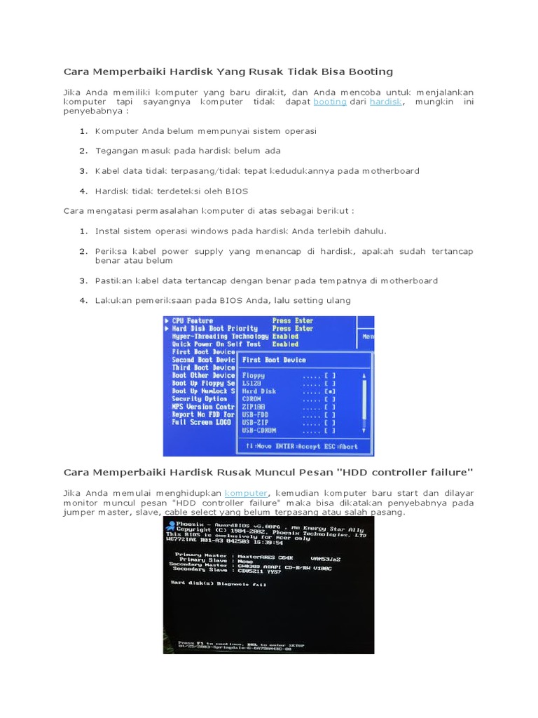Cara Memperbaiki Hardisk Yang Rusak Tidak Bisa Booting