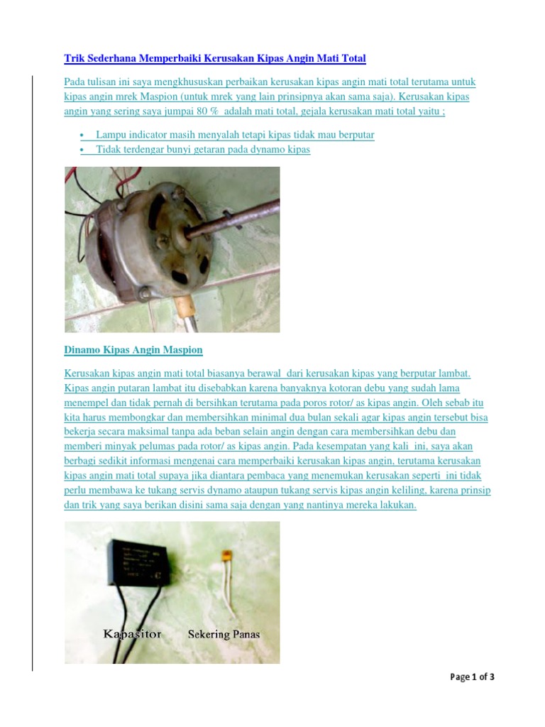 Cara Cepat Perbaikan Kipas Angin Mati Total By Creative Antohood