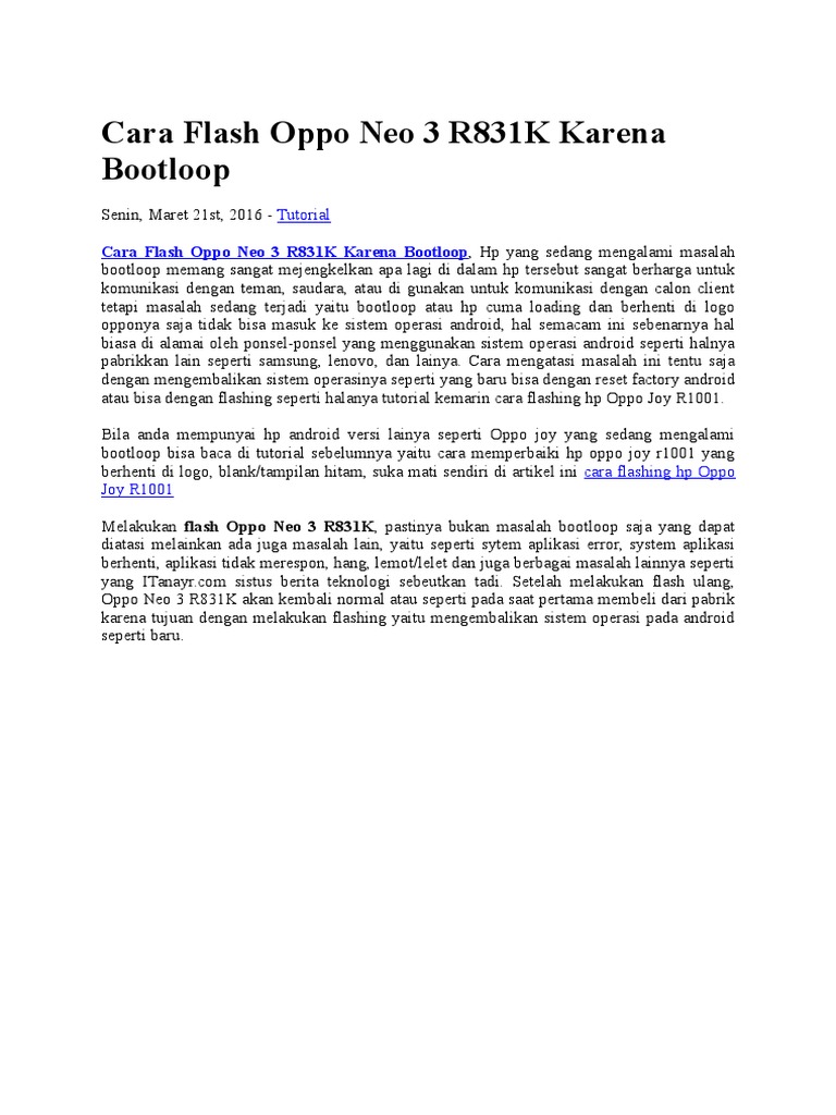 Cara Flash Oppo Neo 3 R831k Karena Bootloop